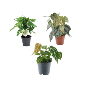 Grön mix 3 växter – Monstera obliqua ’Monkey Leaf’ – 25 cm – ø12 – Philodendron Brandtianum – 35 cm – ø12 – Anthurium Chrystallium – 35 cm – ø12