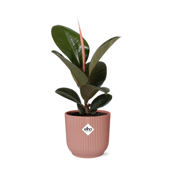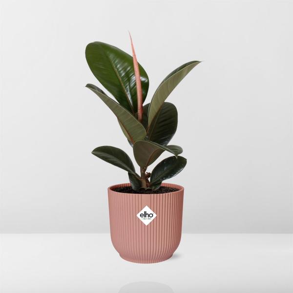 Ficus Elastica ‘Robusta’ i ELHO Vibes Fold 14cm rosa