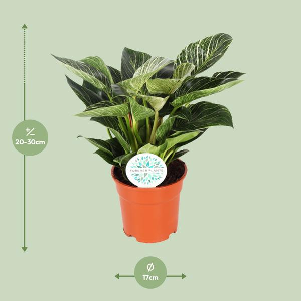 Philodendron Birkin är känd för sin imponerande tillväxthastighet och lättskötta natur. Den trivs bäst i ljusa, indirekta ljusförhållanden och behöver minimal skötsel, vilket gör den perfekt för både nybörjare och erfarna växtentusiaster. Dess kompakta storlek på Ø17cm och höjd på 30cm gör den idealisk för mindre utrymmen som skrivbord, hyllor eller fönsterbrädor.